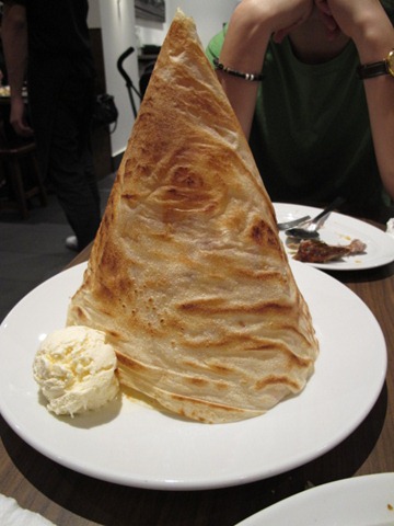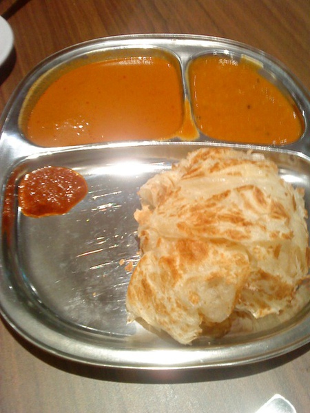 "One of the good things(okay, the only good thing about having to queue at this morden Malausian Chinatown favourite is watching the chef twirl the roti canai flatbread in the air.